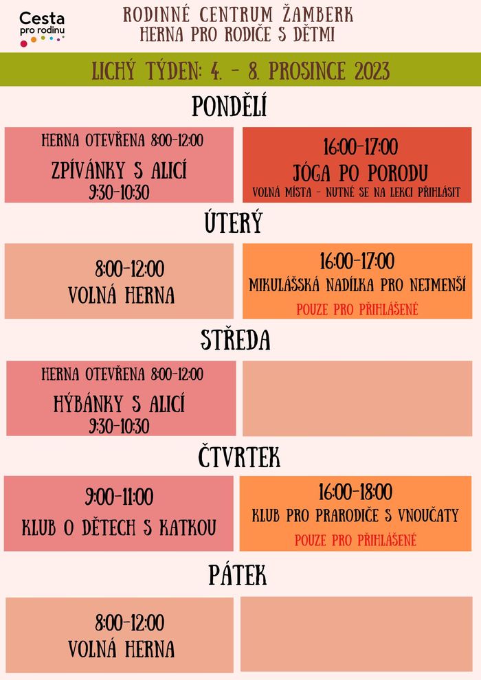 TÝDENNÍ PROGRAM HERNY pro rodiče s dětmi