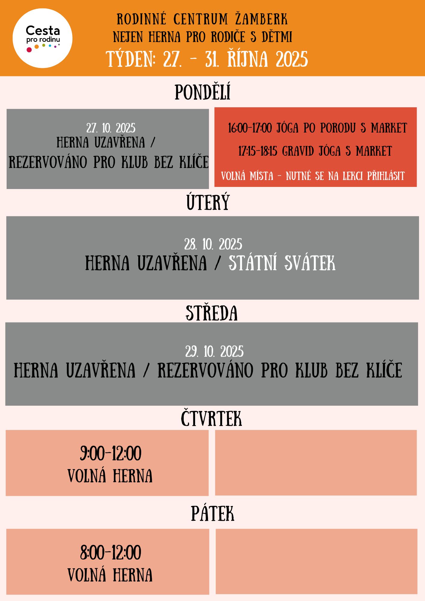 TÝDENNÍ PROGRAM HERNY pro rodiče s dětmi