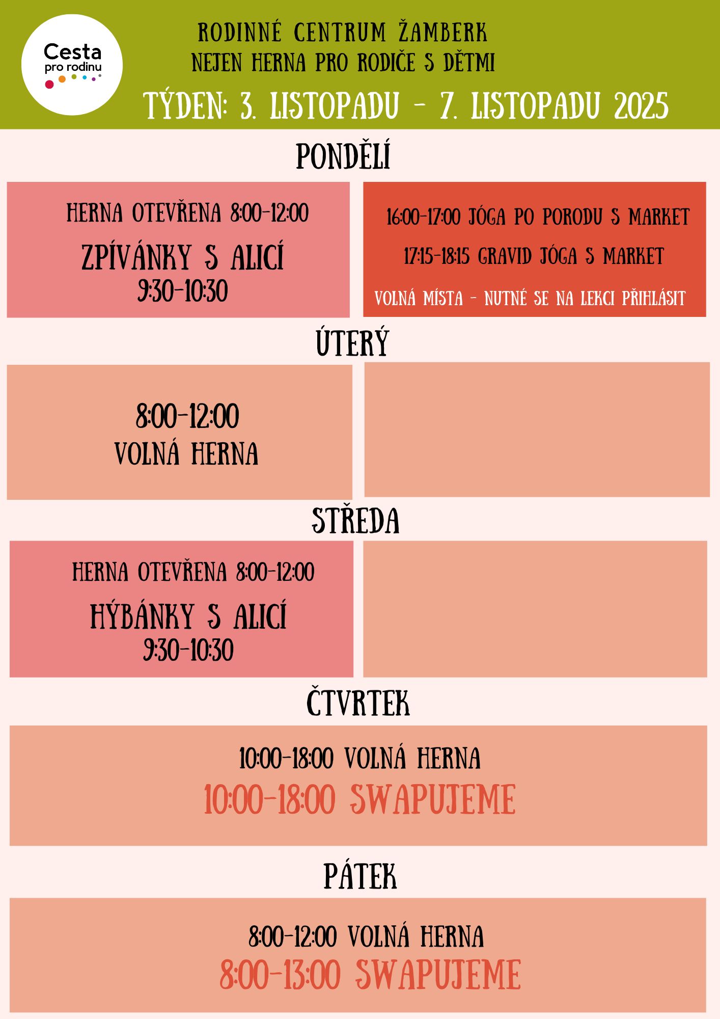 TÝDENNÍ PROGRAM HERNY pro rodiče s dětmi