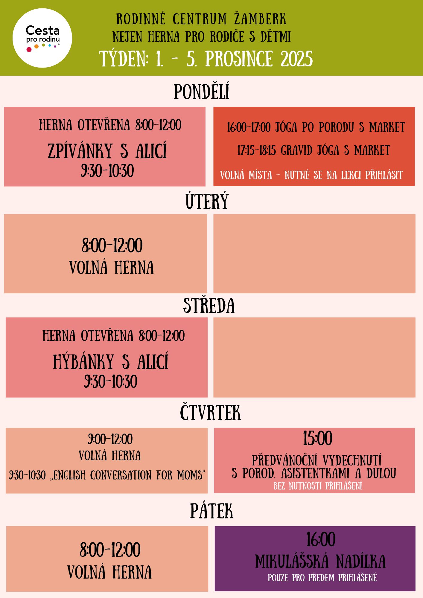 TÝDENNÍ PROGRAM HERNY pro rodiče s dětmi