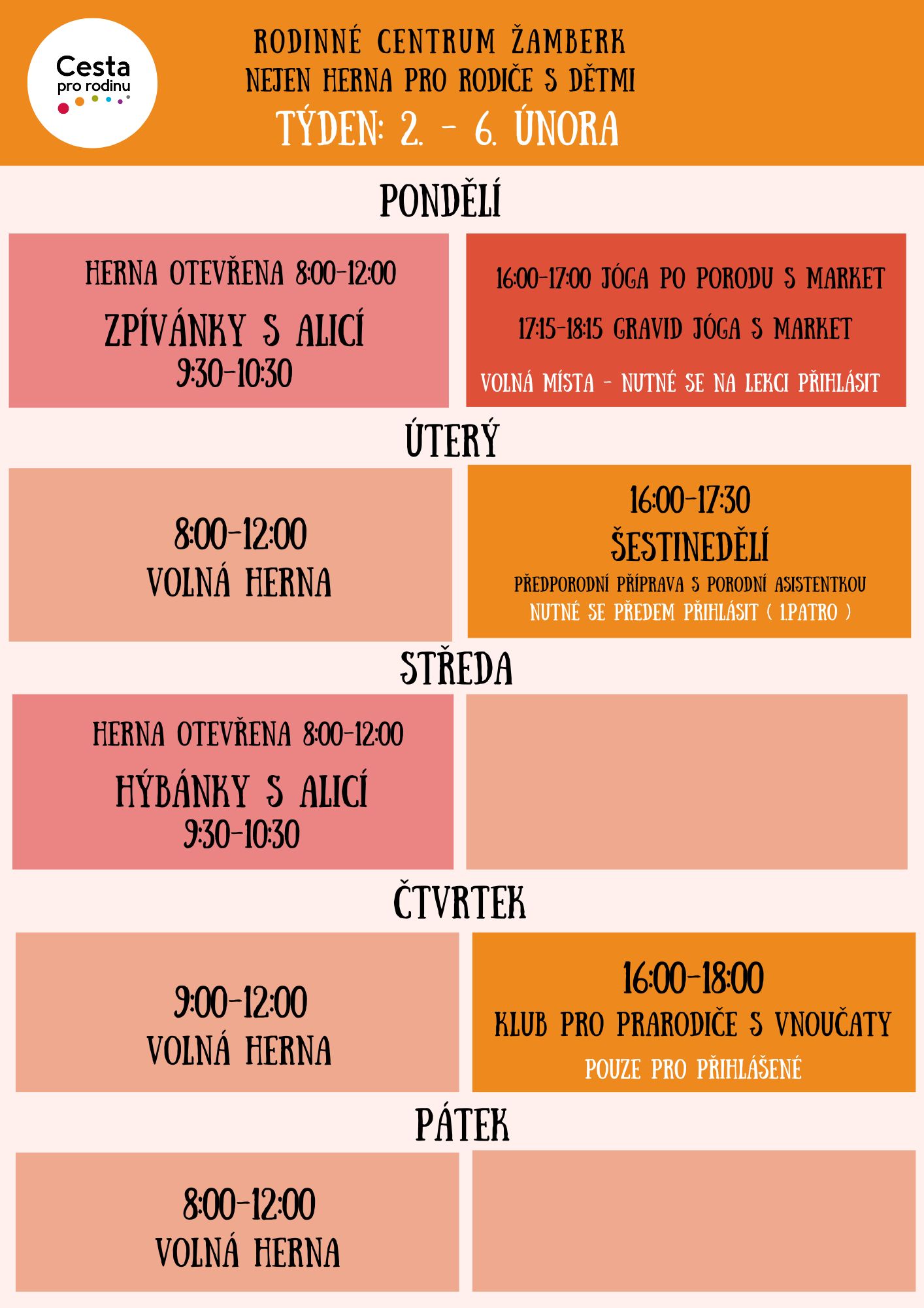 TÝDENNÍ PROGRAM HERNY pro rodiče s dětmi