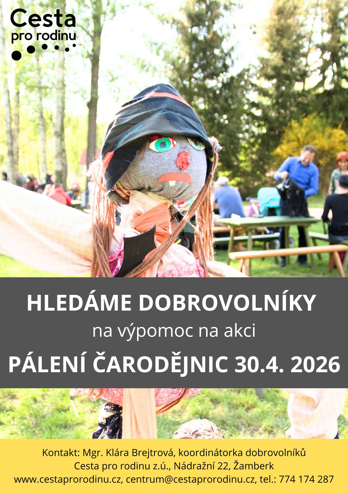 Na akci Pálení čarodějnic 30. 4. 2026 v Žamberku hledáme dobrovolníky, kteří by nám pomohli se zajištěním stanovišť pro děti.