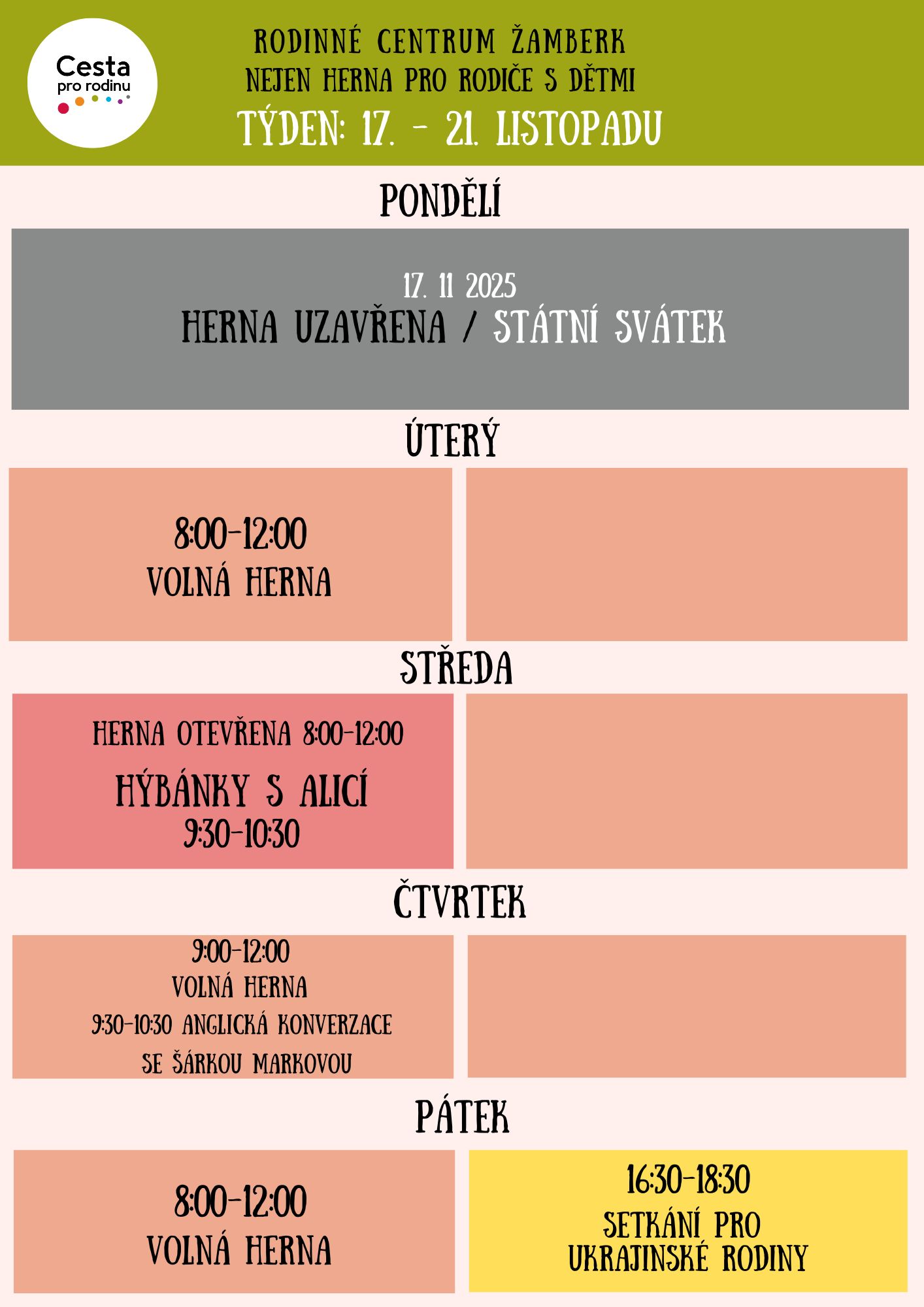 TÝDENNÍ PROGRAM HERNY pro rodiče s dětmi