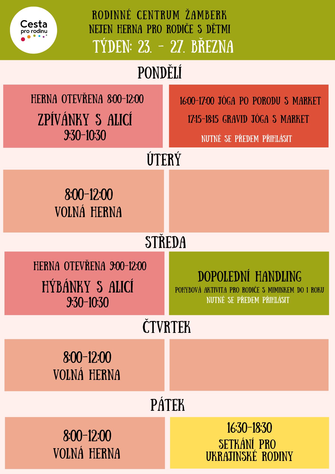 Pokud máte zájem o akce na přihlášení, nezapomeňte si včas vyplnit přihlášku zde: https://cestaprorodinu.webooker.eu